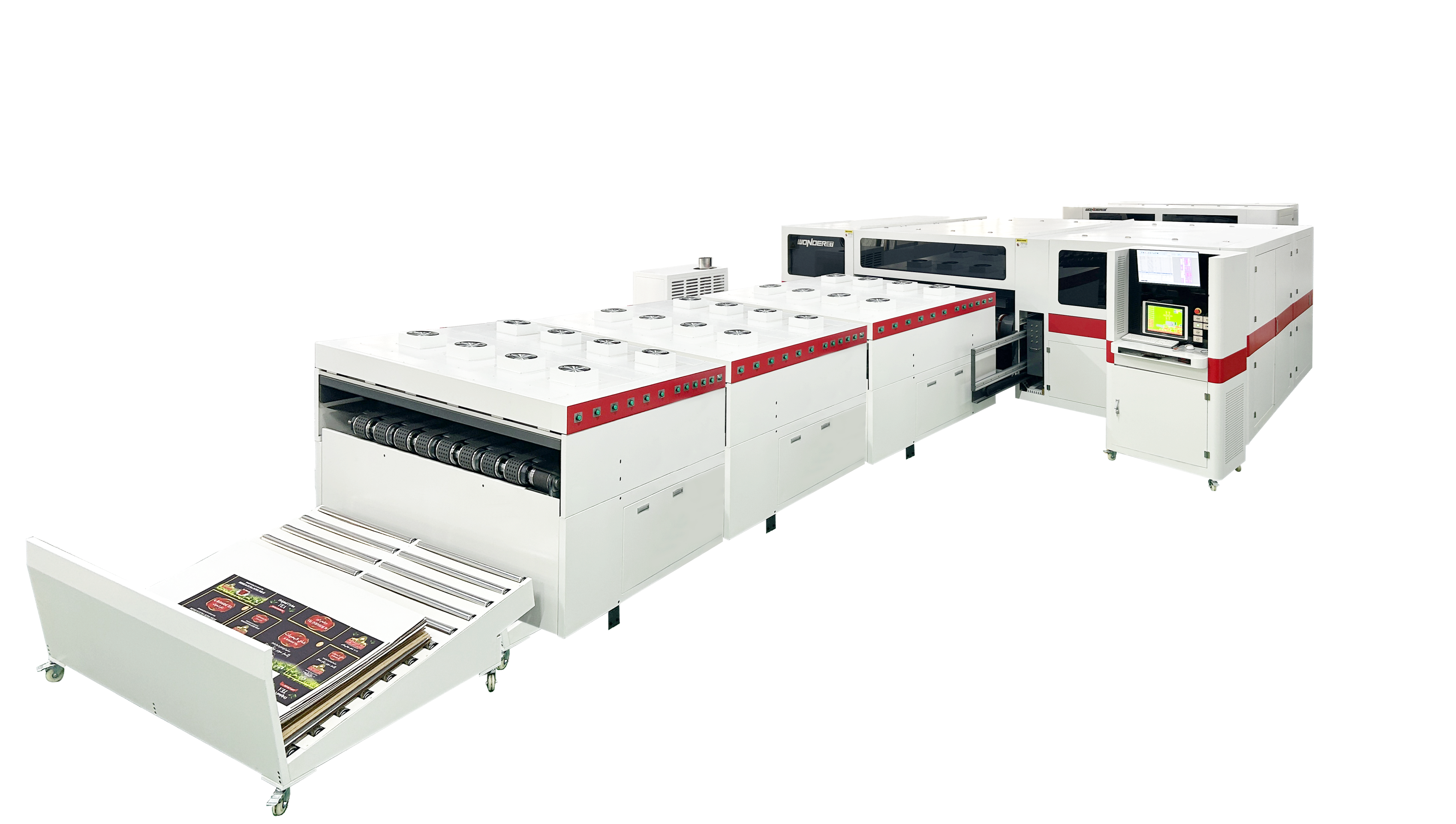 At present, the packaging and printing industry, ordinary watermarking 600npi has basically met customer needs, and the solution of high-definition watermarking and coated board color printing at least 1200npi requested. In order to provide customers with the possibility of printing more vivid colors and achieve more delicate printing quality, after nearly 3 years of repeated research and development testing by the technical team, Wonder finally realized the application of 1800npi high-speed digital inkjet printing technology in packaging printing. The WONDER INNO PRO single pass industrial high precision color digital printing machine was launched at the Sino corrugated Exhibition in April 2024.